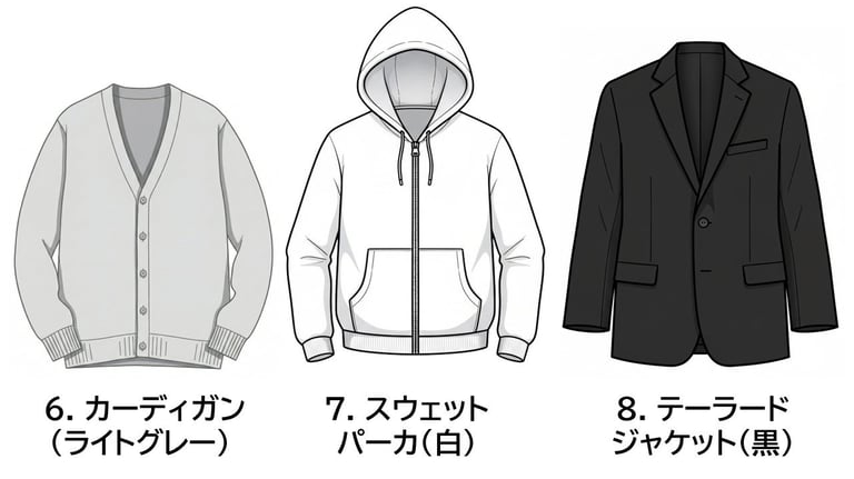 いかがでしたか? たった10着のアイテムでも、「どのアイテムを組み合わせるか(カテゴリー操作)」と「どの色を重ねるか(配色)」のロジックを変えるだけで、これだけ多様な印象を作り出せます。