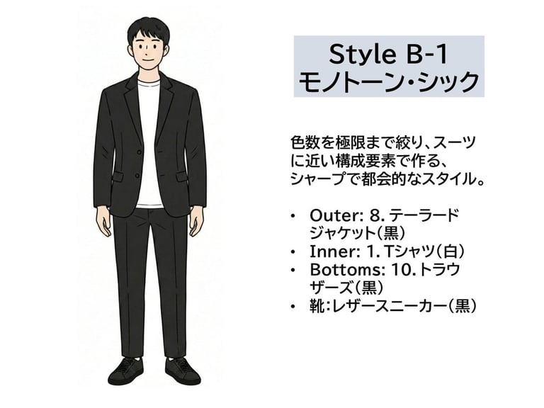 Style B-1:モノトーン・シック(春・秋)