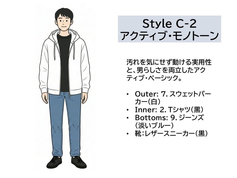 Style C-2:アクティブ・モノトーン(春・秋)