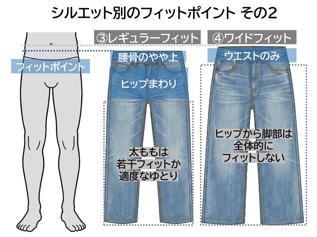 【図:シルエット別のフィットポイント-2 レギュラー、ワイド】