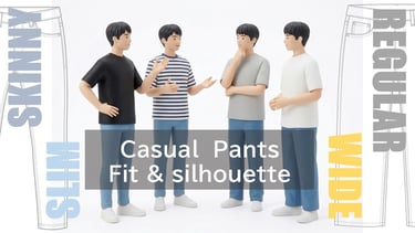 今回はその続きとして、メンズカジュアルパンツのフィットに関する理解を深めるため、スリムやレギュラーフィットを含めたカジュアルパンツ全体のフィットとシルエットを紹介し、ビッグシルエットトップスとの組み合わせ例も解説します。