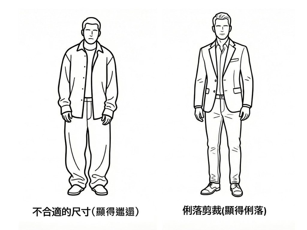 尺寸不合的衣服會產生難看的皺褶,讓外表看起來比實際更差 。反之,即使是 UNIQLO 這樣的基本款,只要肩寬和衣長合身,就能塑造出清爽的「漂亮線條」 。