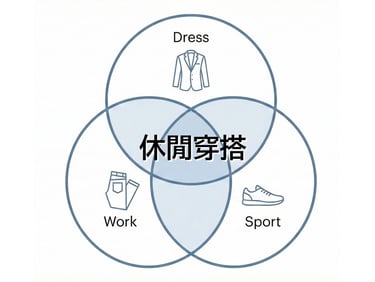 1. 正裝 (Dress): 西裝、襯衫、皮鞋等(來源:貴族、典禮、軍服)。
